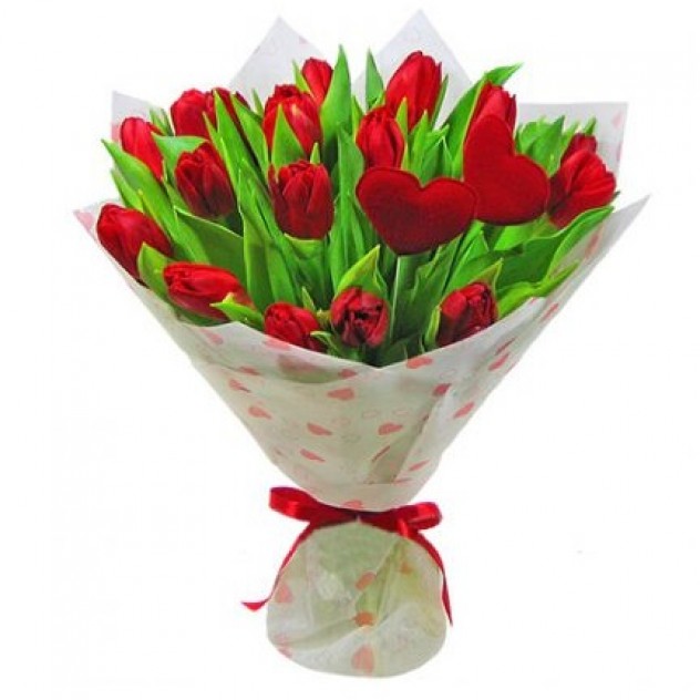 Состав: Тюльпан 19 шт., декор 2 сердца.