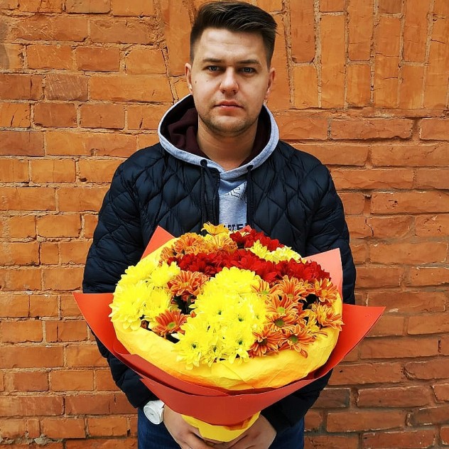 Шикарный, яркий сочный букет из кустовых хризантем