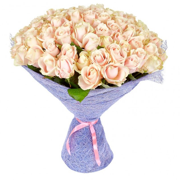 Букет из 101 кремовой розы.