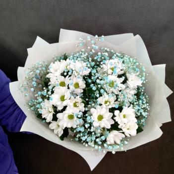 Упаковка для букета: крафт-бумага, Фисташка 3шт., Хризантема кустовая 11шт.