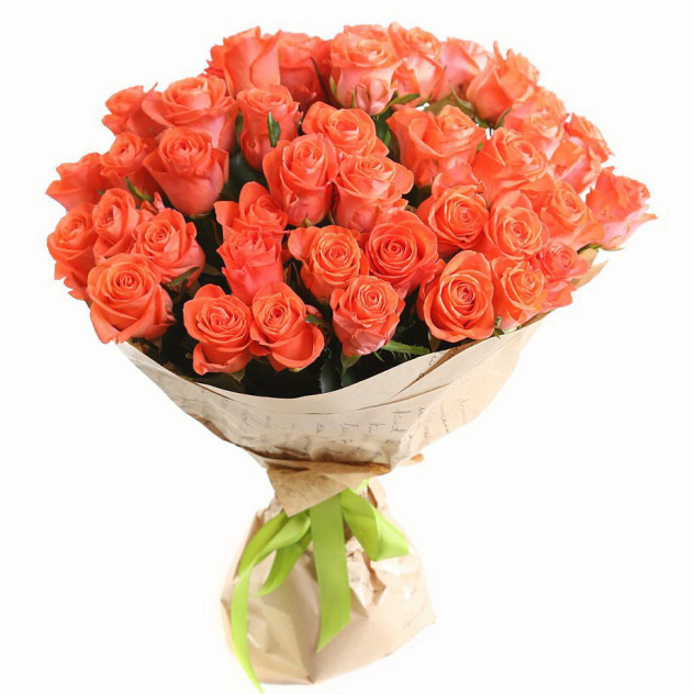 Состав: Упаковка для букета: крафт-бумага, Роза оранжевая 60 см 51шт.