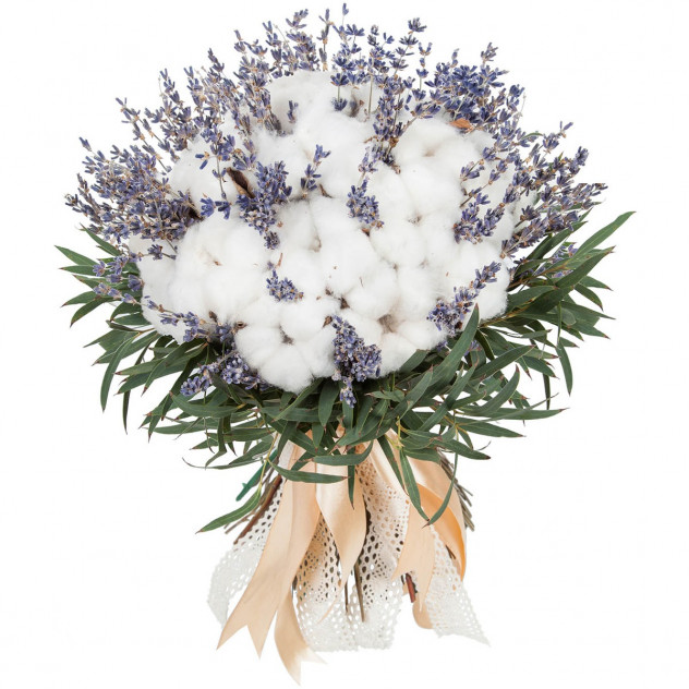 Эвкалипт 4шт., Декор букета и композиции, Хлопок 5шт., Лаванда сухая (пучек) 2шт.