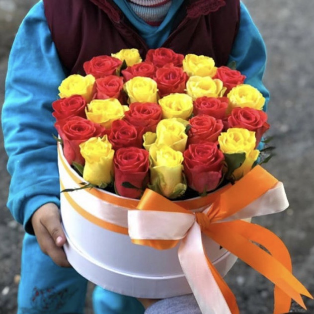 Состав: Роза одноголовая - 27 шт. Коробка - 1 шт. Лента - 2 шт.