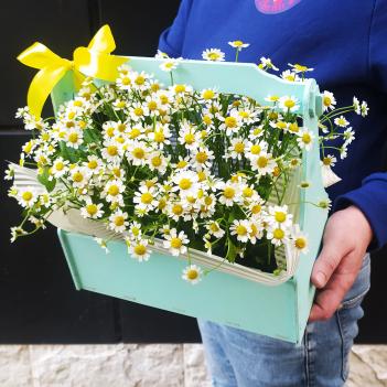 Упаковка (пленка с лентой), Фисташка 8шт., Тюльпан 75шт., Корзина плетеная, Пиафлор (оазис) 2шт., Декор букета и композиции